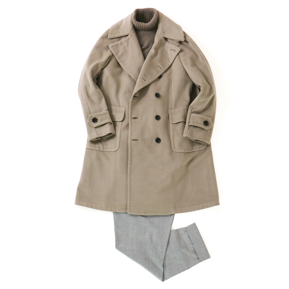 ITEM : COAT / RING JACKET Napoli PRODUCT NO. : 59012F22U MODEL : DOUBLE RAGLAN COAT PRICE : 605,000- YEN (tax included) MATERIAL : CASHMERE 100% SIZE : 44 . 46 . 48 . 50