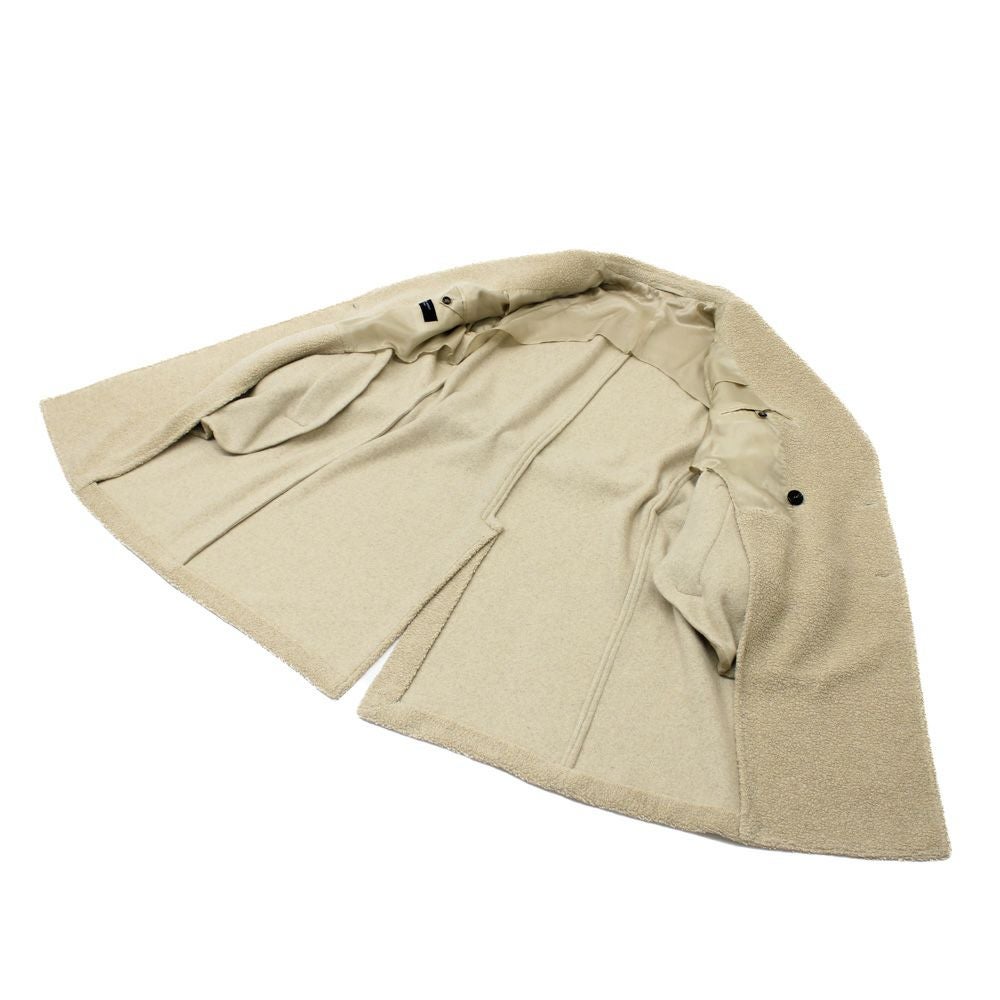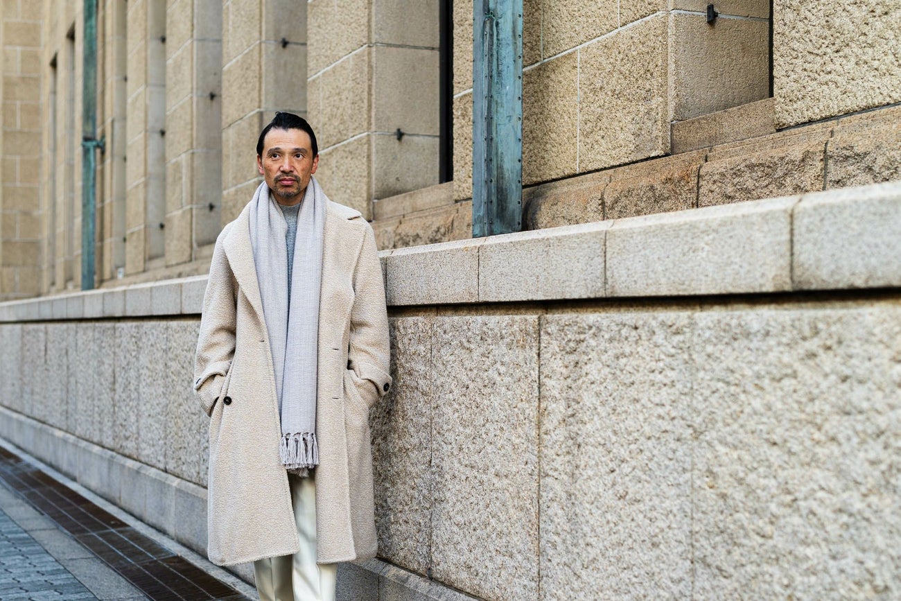 マルティナフランカという地域でレディースのコートメインでモノづくりをしている工房で作られた一品。 襟の部分はプレスの加減を調整することで柔らかさを演出し、裾の縫い代を少なくして溜りをより軽やかに、エレガントな雰囲気に仕上げている。 イタリアならではの美的センス、美意識が詰め込まれたコートが完成。