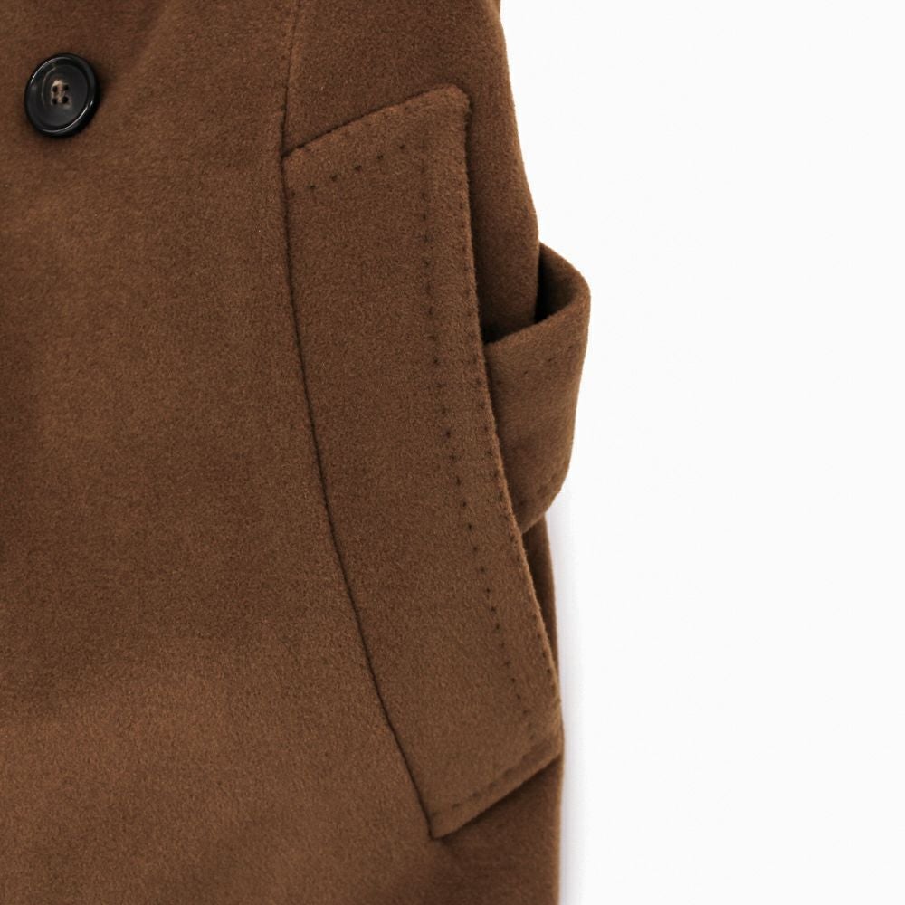 マルティナフランカという地域でレディースのコートメインでモノづくりをしている工房で作られた一品。 襟の部分はプレスの加減を調整することで柔らかさを演出し、裾の縫い代を少なくして溜りをより軽やかに、エレガントな雰囲気に仕上げている。 イタリアならではの美的センス、美意識が詰め込まれたコートが完成。