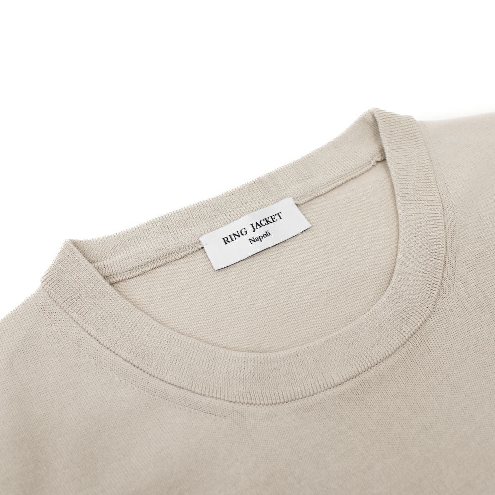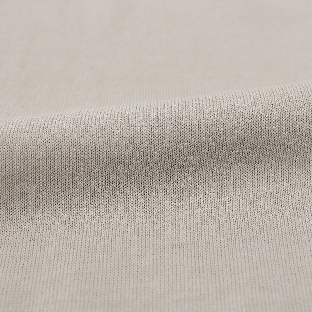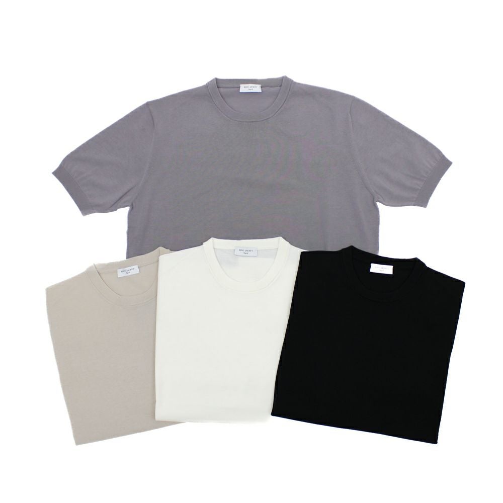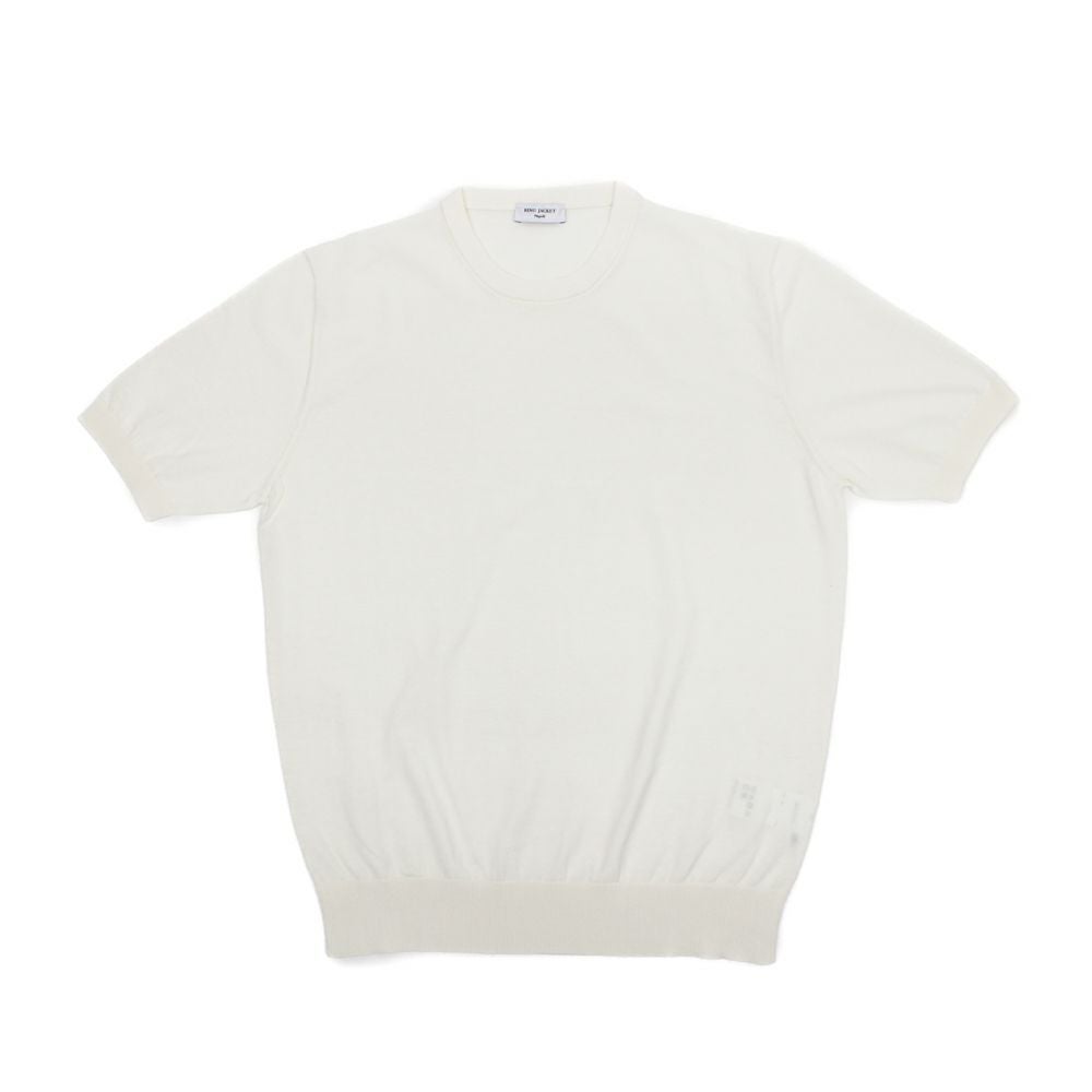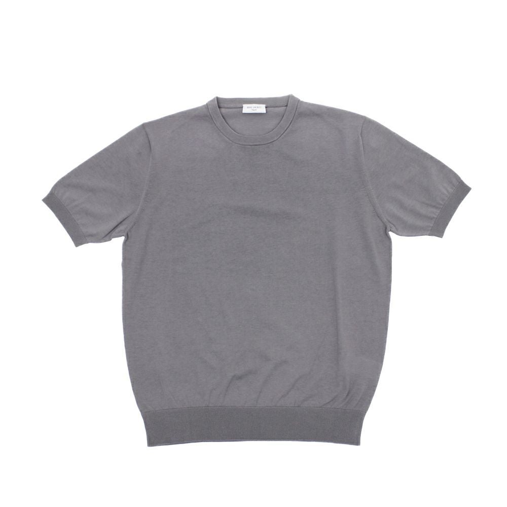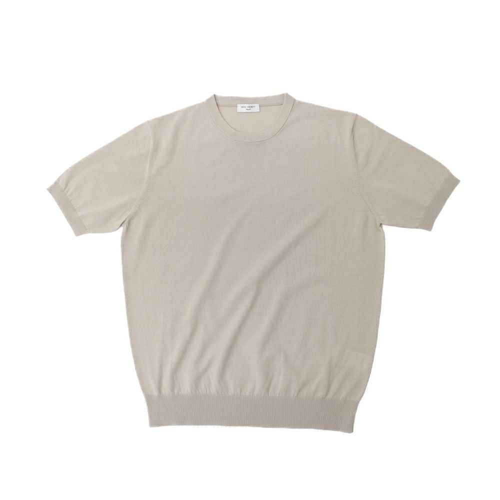 ジャケットスタイルやウールスラックスとの相性が良くビジネス、カジュアル問わず活躍するニットTシャツ。 ハイツイスト(強撚糸)特有のシャリ感がある爽やかな肌当たりの生地は盛夏の時期にもストレスなく快適な着用感を与えてくれる。 首回りや腕回りのリブ部分などをややタイト目なサイジングに設定する事で、消耗が激しいイメージがあるニットカットソーも長く愛用できるよう配慮がなされている。