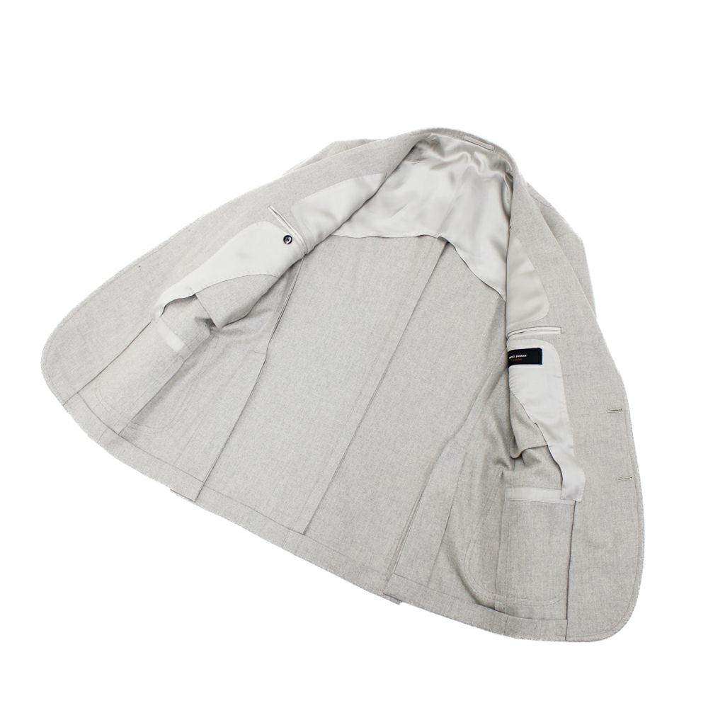 身体の抑揚に対し適度に取られたエレガントなゆとりと優美なシルエットが特徴。 少し広めの衿と、やや低めに設定されたウエスト位置が落ち着いた印象を与えてくれます。