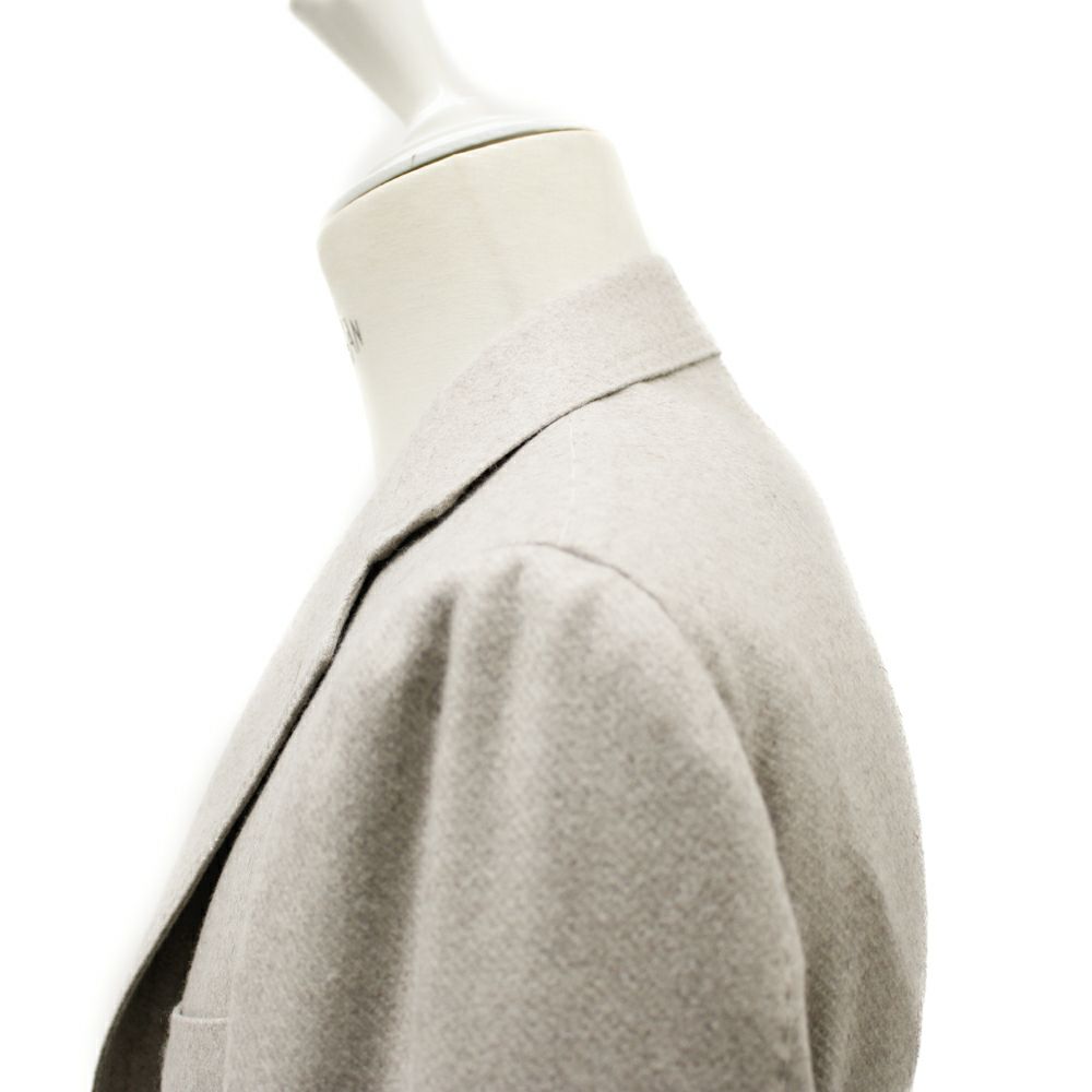 最高級のカシミアにミンクをブレンドした生地を使用しています。まるで空気をまとうような軽やかさと、驚くほど滑らかな肌触りが魅力。光の角度によってさりげなく表情を変える上品な光沢感が、静かな存在感を放ちます。