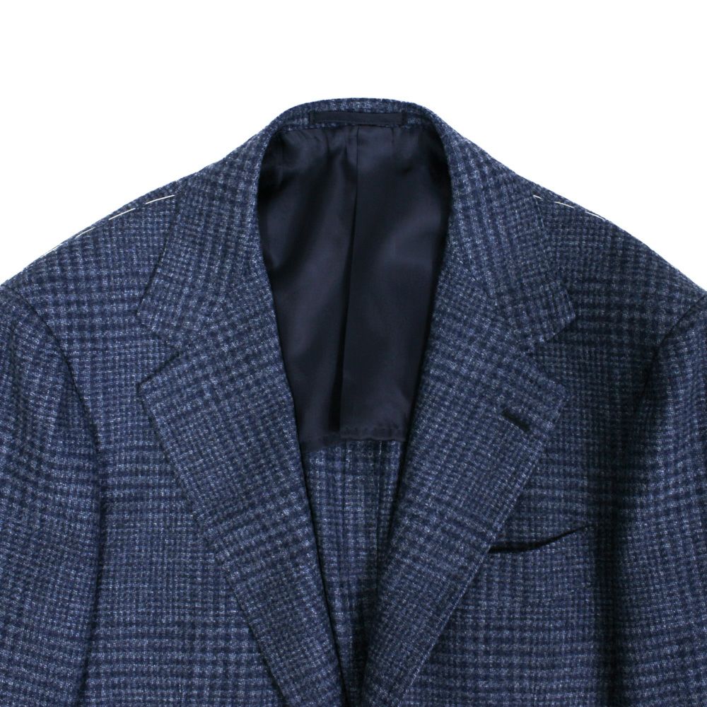 大胆に設定された幅広のラペルとゴージの角度の下がり方が昨今のクラシックスタイルを最も色濃く反映しているモデル。 サイジングは細すぎず太すぎず、良い塩梅のシルエットラインとなっています。