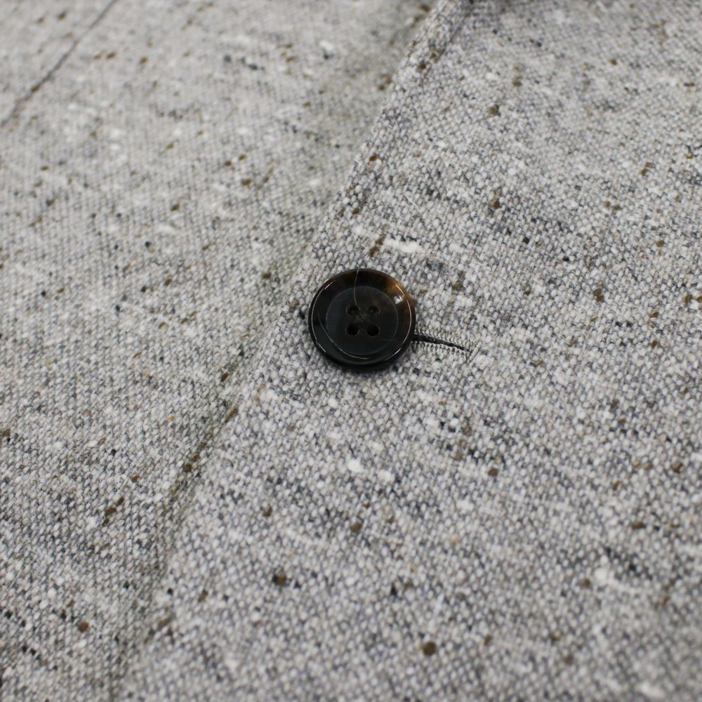 420gのしっかりとしたウェイトから生まれる冬らしい温かみと、グレージュの持つ軽やかで柔らかな色合い。 この相反する要素が絶妙に溶け合い、他にはない洗練を放ちます。 重厚なツイードの風合いに、繊細な原毛がもたらすしなやかなタッチと上品な艶。 クラシックな素材感を纏いながらも、見た目は明るく、冬のスタイリングを軽やかに演出するジャケットです。
