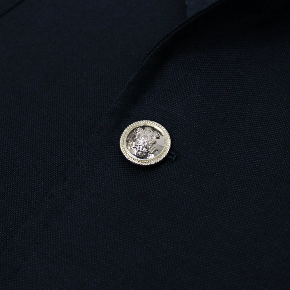 シャープな張りと反発力を備えた素材を用い、360gのしっかりとしたウエイトがネイビーブレザーに端正で構築的な佇まいを与えます。ドライで清涼感のあるタッチと美しい立体感が、メタルボタンの存在感を上品に引き立て、春夏シーズンでも凛とした印象で着こなせる一着です。