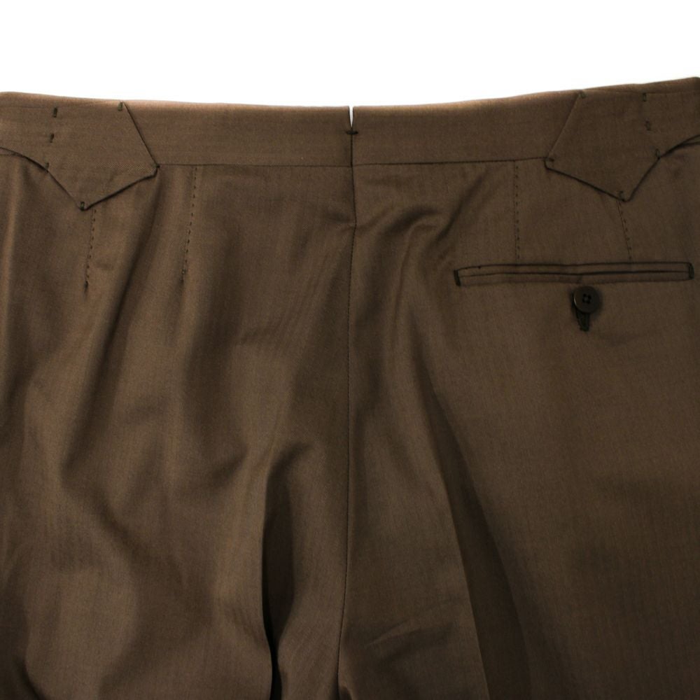 ハンドメイドのトラウザーズに比べて、マシンメイドの製品はコストパフォーマンスに優れた選択肢ながら高品質を維持している。 素材には高品質なウールやコットンなどの素材が使用されており縫製の一貫性と精度が高く安定した高品質を約束します。