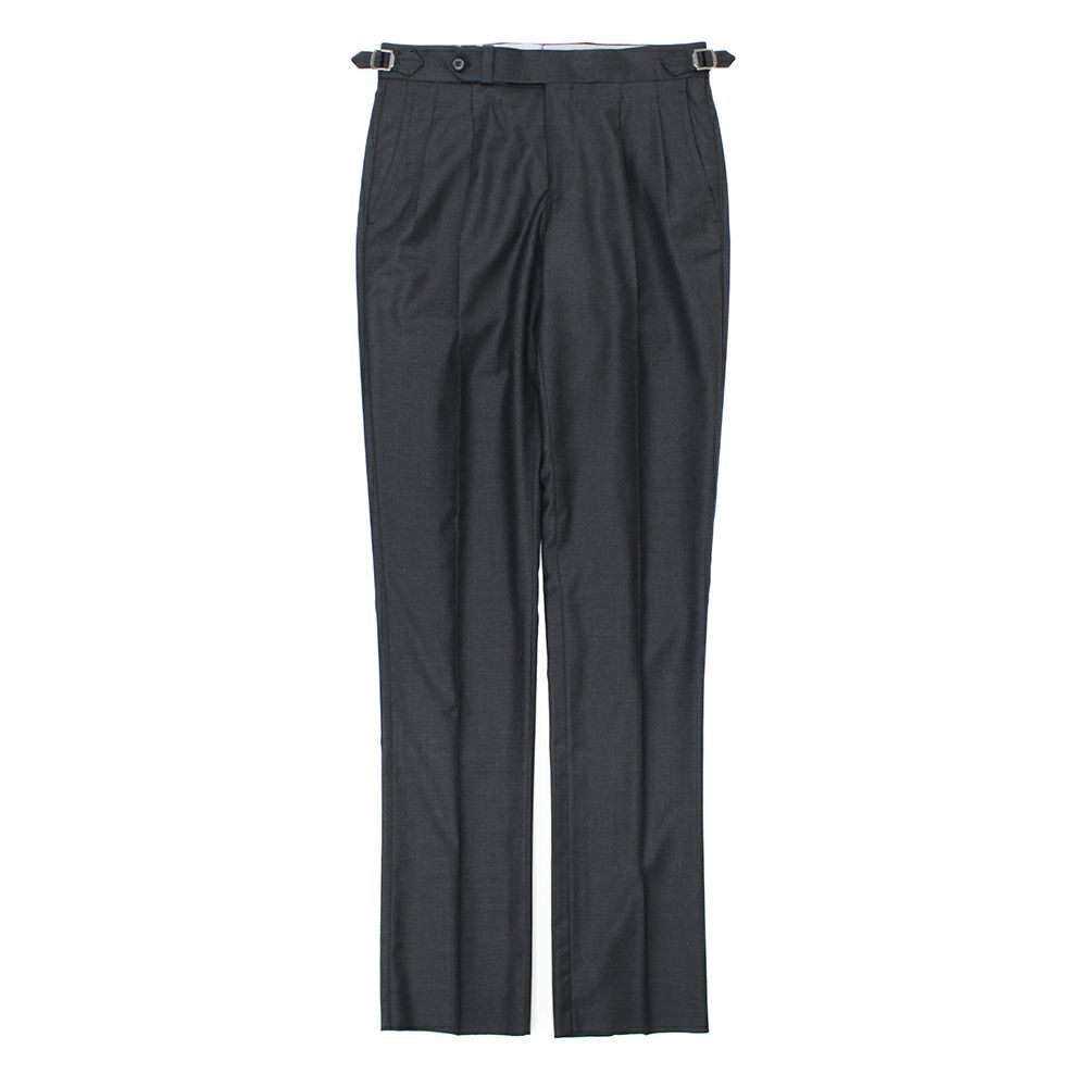 2プリーツ サイドバックル トラウザース チャコールグレー/ミディアムグレー