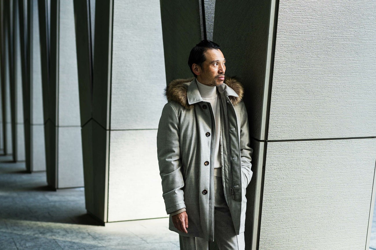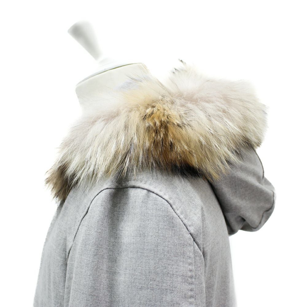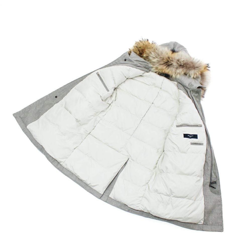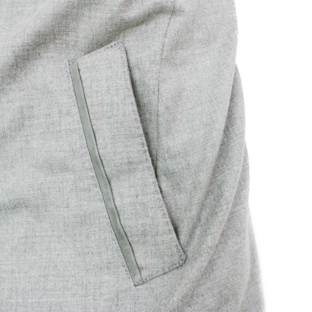 モノづくりの聖地ナポリにて、ダウンコート製作のスペシャリストが手掛けたダウンコート。 フードは取り外し可能で、取り外すとハーフコートのような、ダウンコートではあるがスーツやジャケットの上からでも着用しやすいデザインに仕上がっている。 というのも、中でダウンが膨らむような形、表地に撥水加工を施したウールを使用する事でスポーティーな印象が強くなり過ぎない、ドレススタイルにも着用しやすいダウンコートである。 ディテールを見ていくと、まずは襟やフロントにあるステッチ。これがダウンコートには珍しく、ほかにない表情を魅せてくれる。そして、その襟やフロント部分には上質なシープスウェードを使用し、高級感のある仕上がりに。ボタンはリングヂャケットオリジナルのブリーチ加工の水牛ボタンを使用。 モデル着用サイズ:2 身長:170cm 体重:63kg 肩幅:46cm バスト:89cm ウエスト:79cm ヒップ:94cm