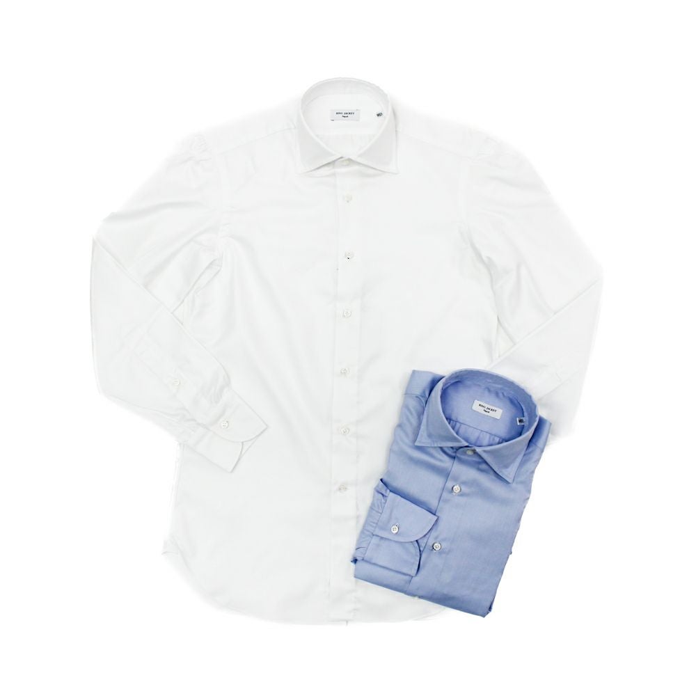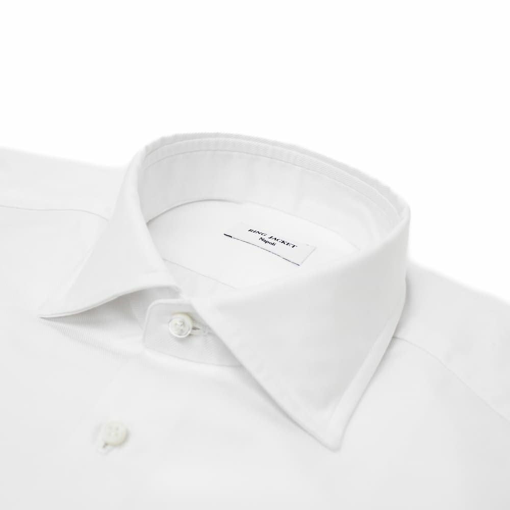 ツイル ワイドカラー シャツ ホワイト/ブルー