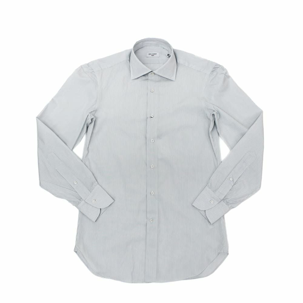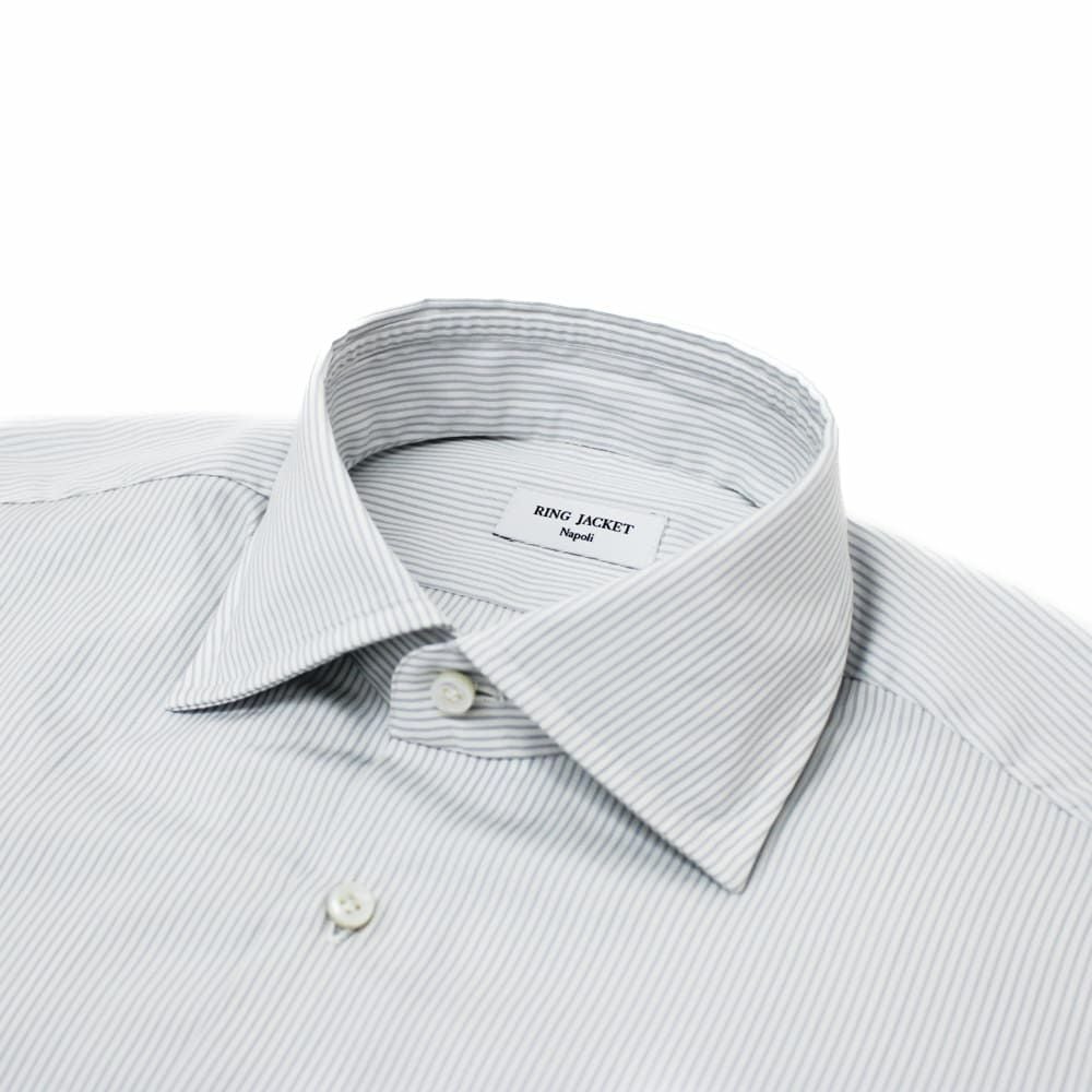 ◆ワイドカラー RING JACKET Napoliのシャツの中で最も角度の広い襟柄。 タイドアップだけでなくノータイスタイルにもオススメです。 背ダーツやタックなども入らないシンプルなシルエットラインは太すぎず、細すぎず、抜群に美しいシルエットラインを演出してくれます。