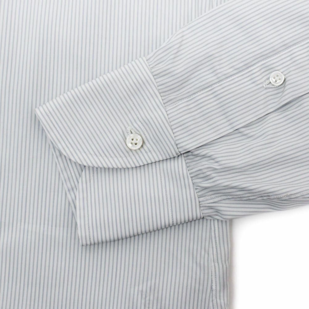 モノ作りの聖地、ナポリで生み出されるRING JACKET Napoliシャツ。 ギャザー、イセの量、運針、ステッチ幅、剣ボロ、ボタンの根巻、カンヌキなど、リングヂャケットのこだわりが詰まった1枚。 12工程をハンドで仕上げ非常に柔らかな雰囲気に仕上がっています。 しなやかさ、上品な光沢感がありながらしっかりとした素材感のブロード生地を使用している。