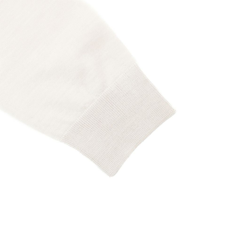 ウールのクオリティは様々である。 メリノウールとはメリノ種の羊毛を指す、“羊”の王様”とも呼称される事でも知られている。この生地はそのメリノウールの中でもさらに優秀なブリーダーの元育てられた良質な原毛をベースとして作り出されたウールである。上質なウール独特のヌメリ感、ほのかな光沢感を放ち上品な雰囲気に溢れている。しっとりとした質感で包み込まれる至極の着心地を体感できるセーター。※同素材でタートルネックセーターのお取り扱いもございます。