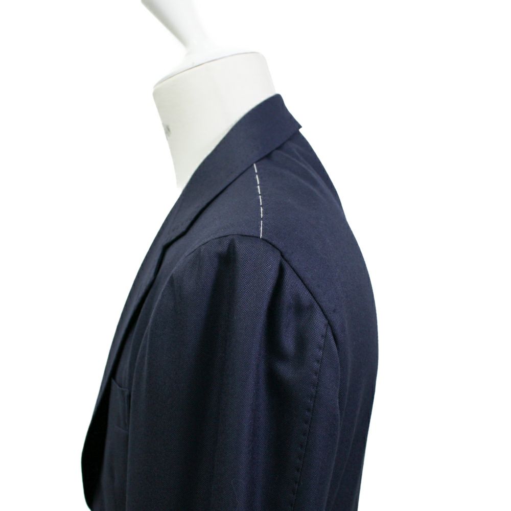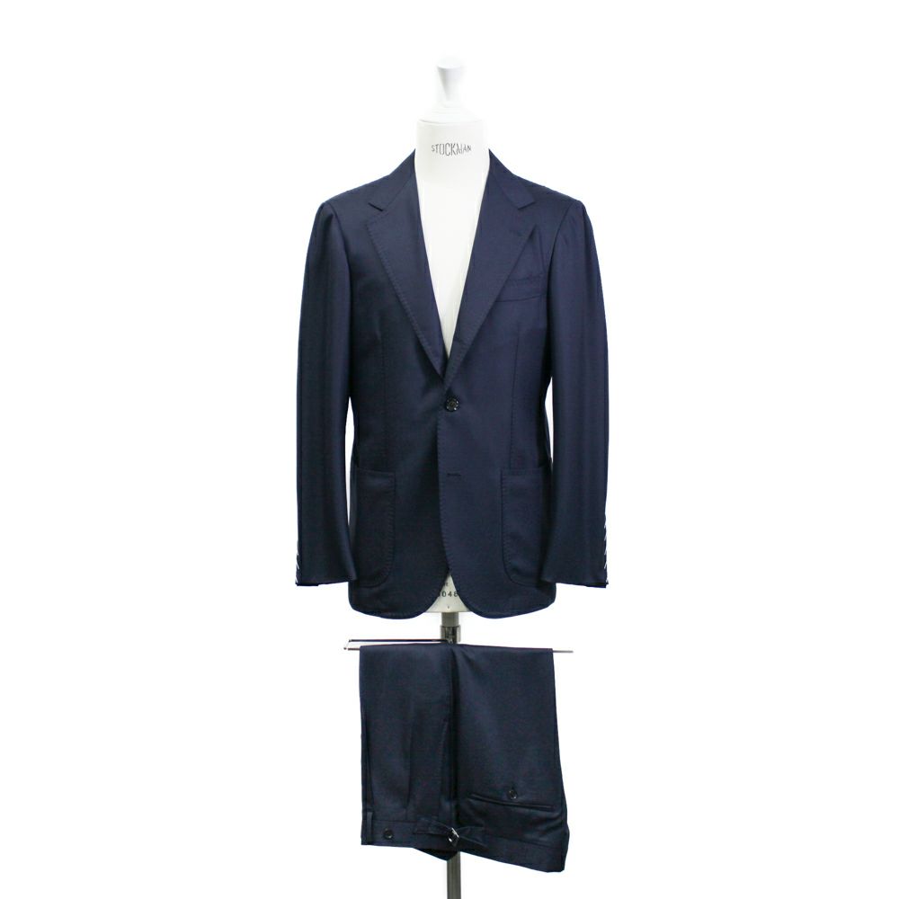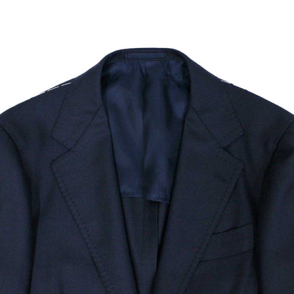 大胆に設定された幅広のラペルとゴージの角度の下がり方が昨今のクラシックスタイルを最も色濃く反映しているモデル。 サイジングは細すぎず太すぎず、良い塩梅のシルエットラインとなっています。