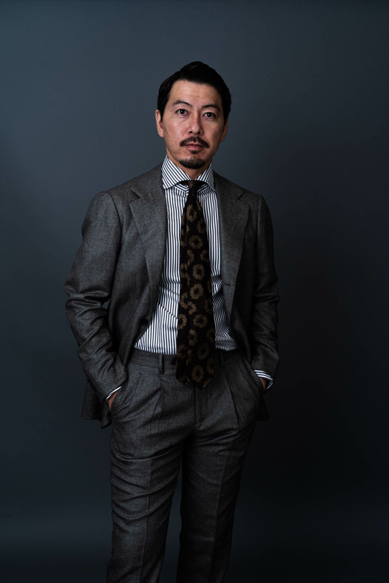 ツイル ワイドカラーシャツ ホワイト×ブラウン ロンドンストライプ