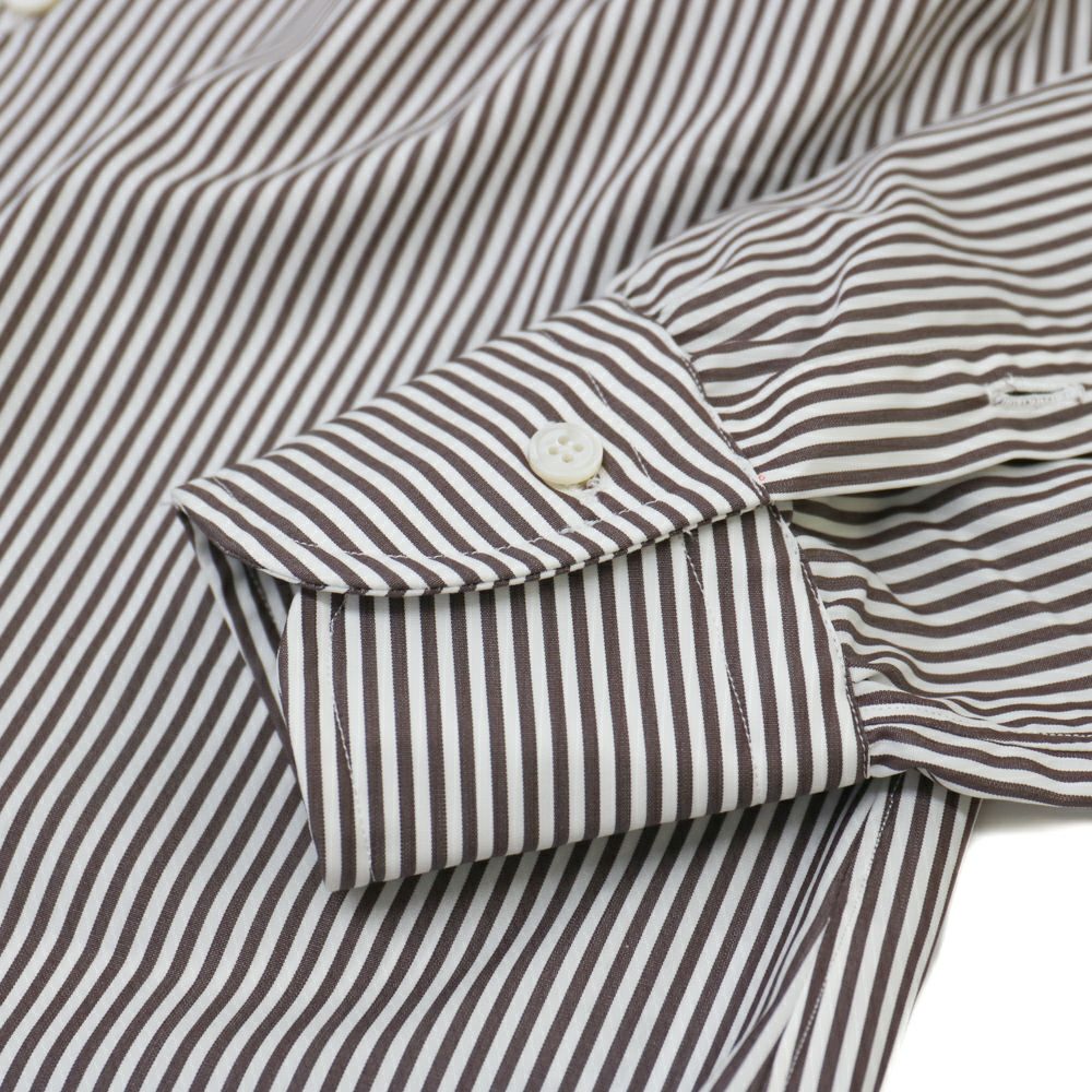 ブロード タブカラーシャツ ホワイト×ブラウン ペンシルストライプ