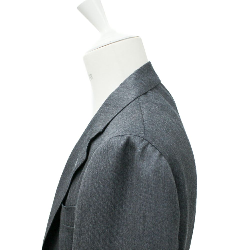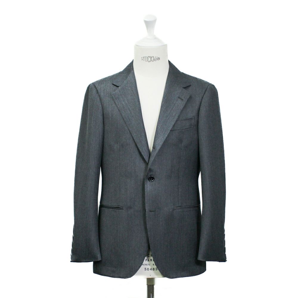 大胆に設定された幅広のラペルとゴージの角度の下がり方が昨今のクラシックスタイルを最も色濃く反映しているモデル。 サイジングは細すぎず太すぎず、良い塩梅のシルエットラインとなっています。