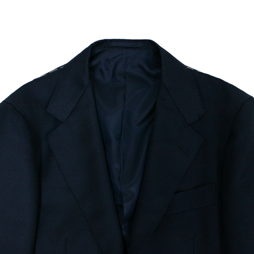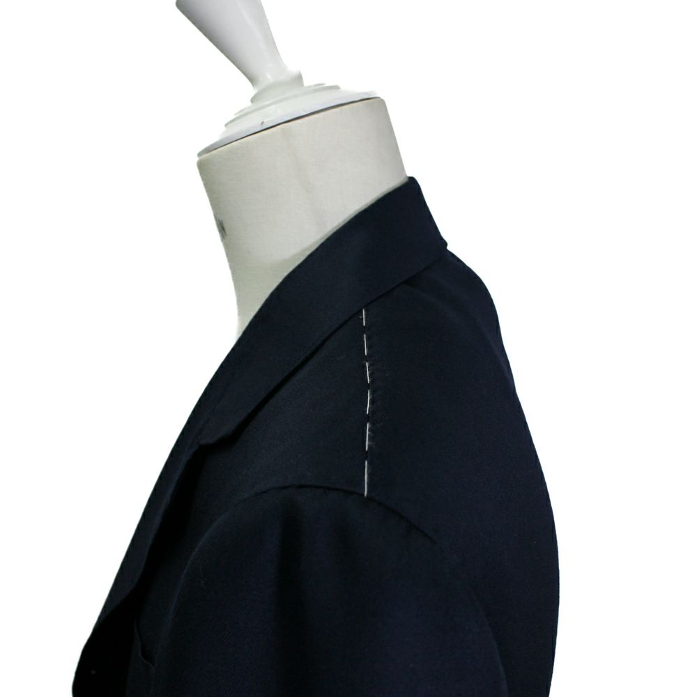 大胆に設定された幅広のラペルとゴージの角度の下がり方が昨今のクラシックスタイルを最も色濃く反映しているモデル。 サイジングは細すぎず太すぎず、良い塩梅のシルエットラインとなっています。