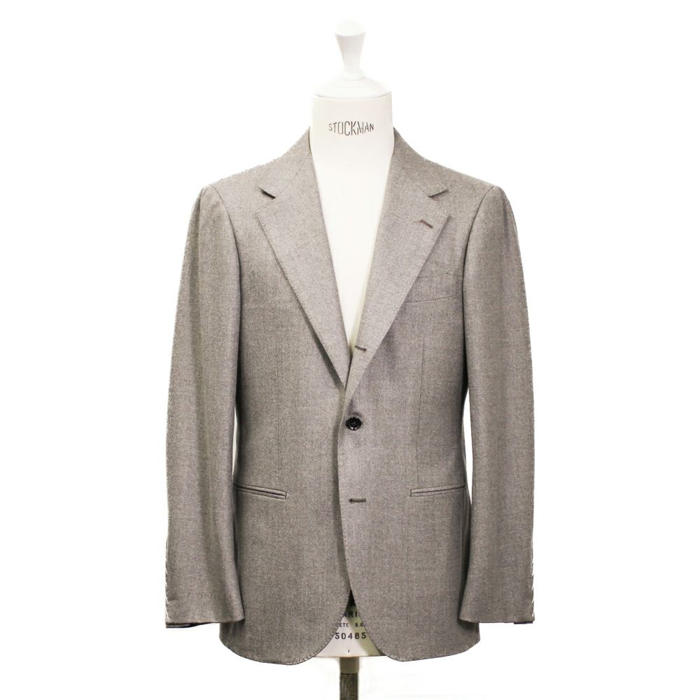 大胆に設定された幅広のラペルとゴージの角度の下がり方が昨今のクラシックスタイルを最も色濃く反映しているモデル。 サイジングは細すぎず太すぎず、良い塩梅のシルエットラインとなっています。