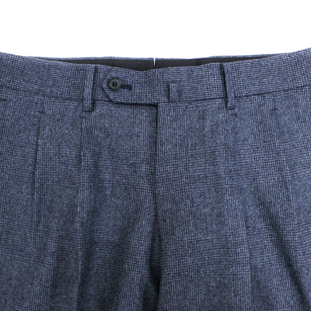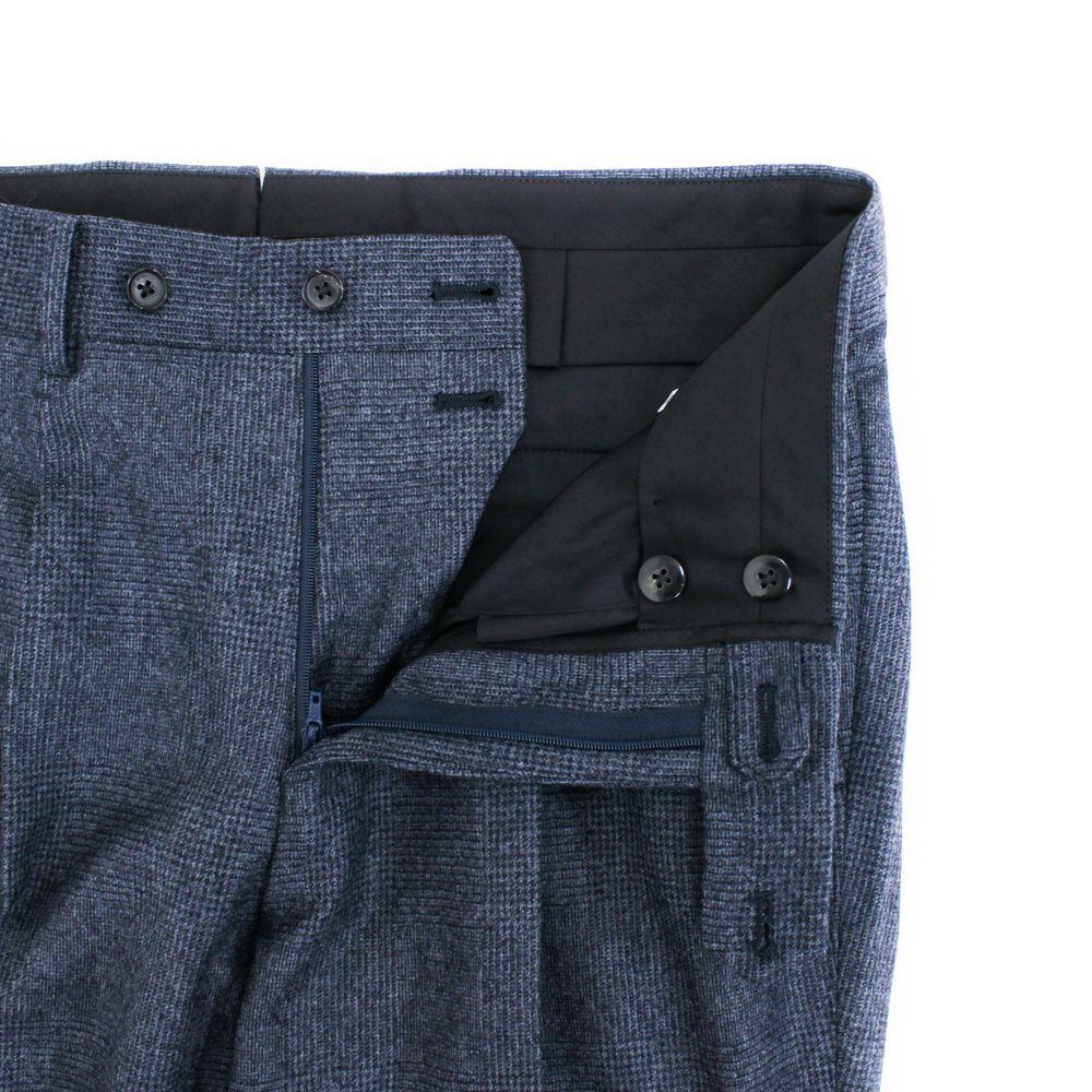 クラシックな表情の2プリーツスラックス。 程よく深い股上とゆとりを持たせたワタリから裾にかけてはテーパードラインとなっており、古臭さを感じさせないシルエットです。