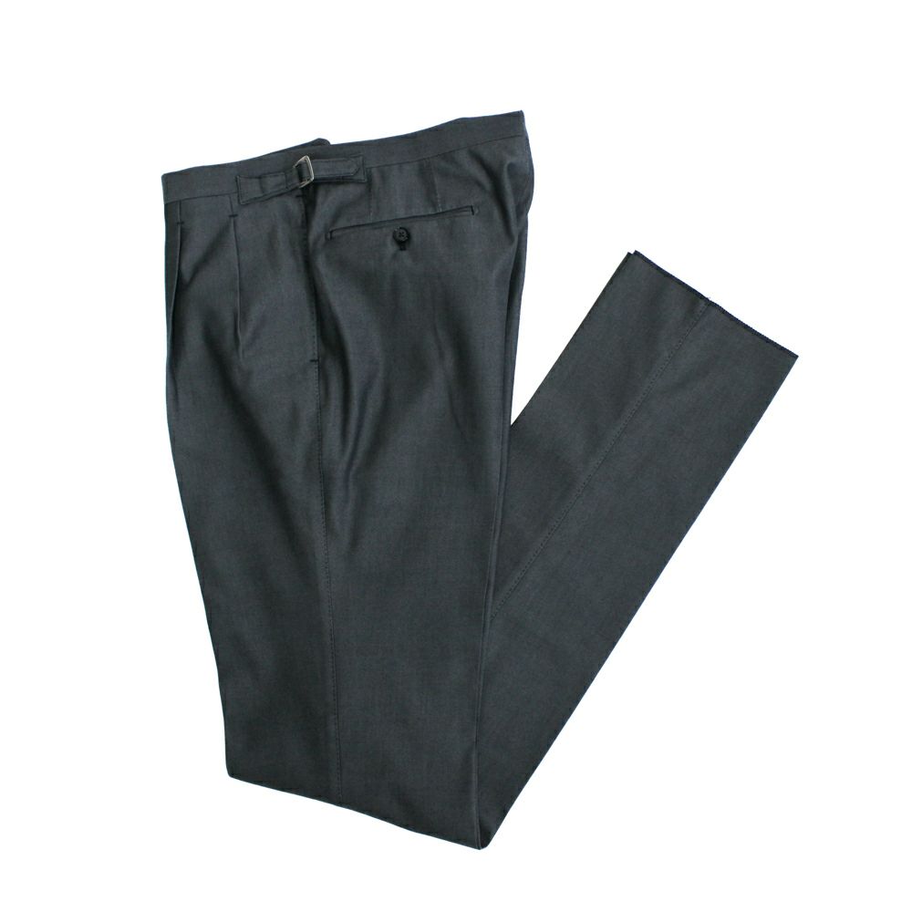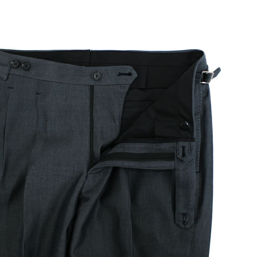 クラシックな表情の2プリーツスラックス。 程よく深い股上とゆとりを持たせたワタリから裾にかけてはテーパードラインとなっており、古臭さを感じさせないシルエットです。