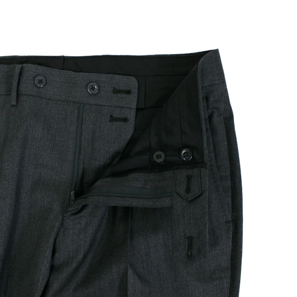 定番のワンプリーツ仕様。 適度な深さの股上、ヒップにゆとりを持たせ裾に向けてのテーパード具合を強めにする事でストレスない着用感だがすっきりとした印象でご着用いただけるモデル。