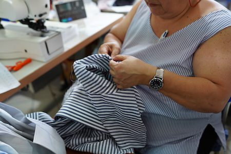 そのため、職人が素材にあわせて調整しながら手縫いでボタンつけをしています。